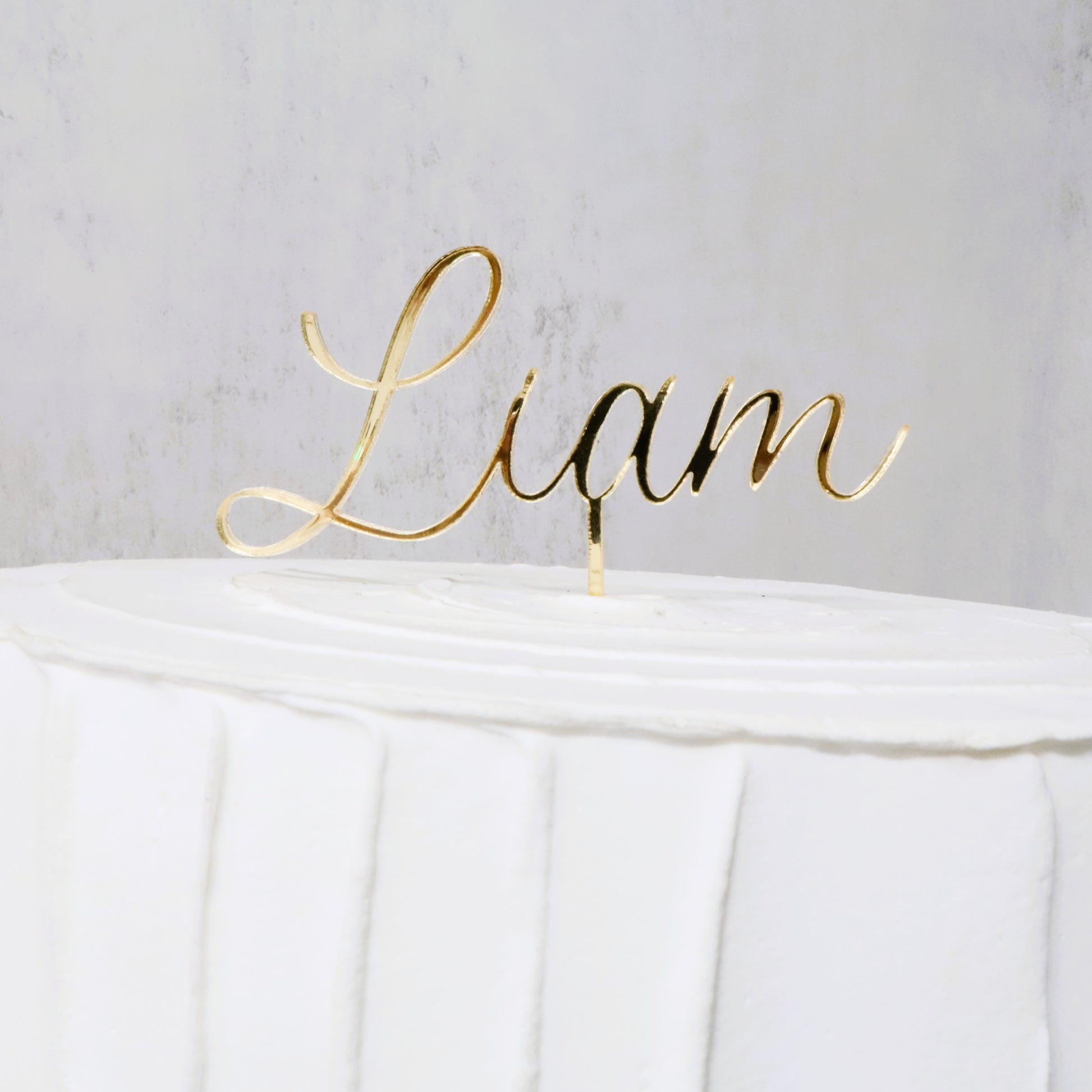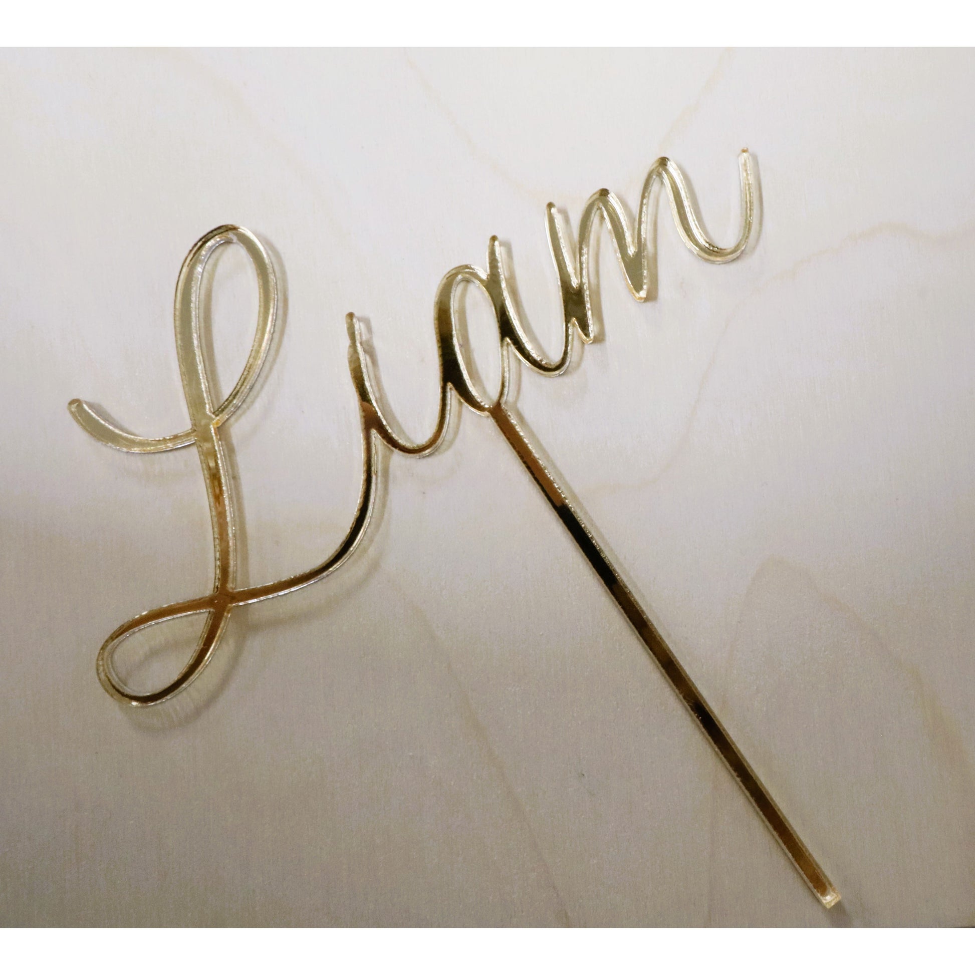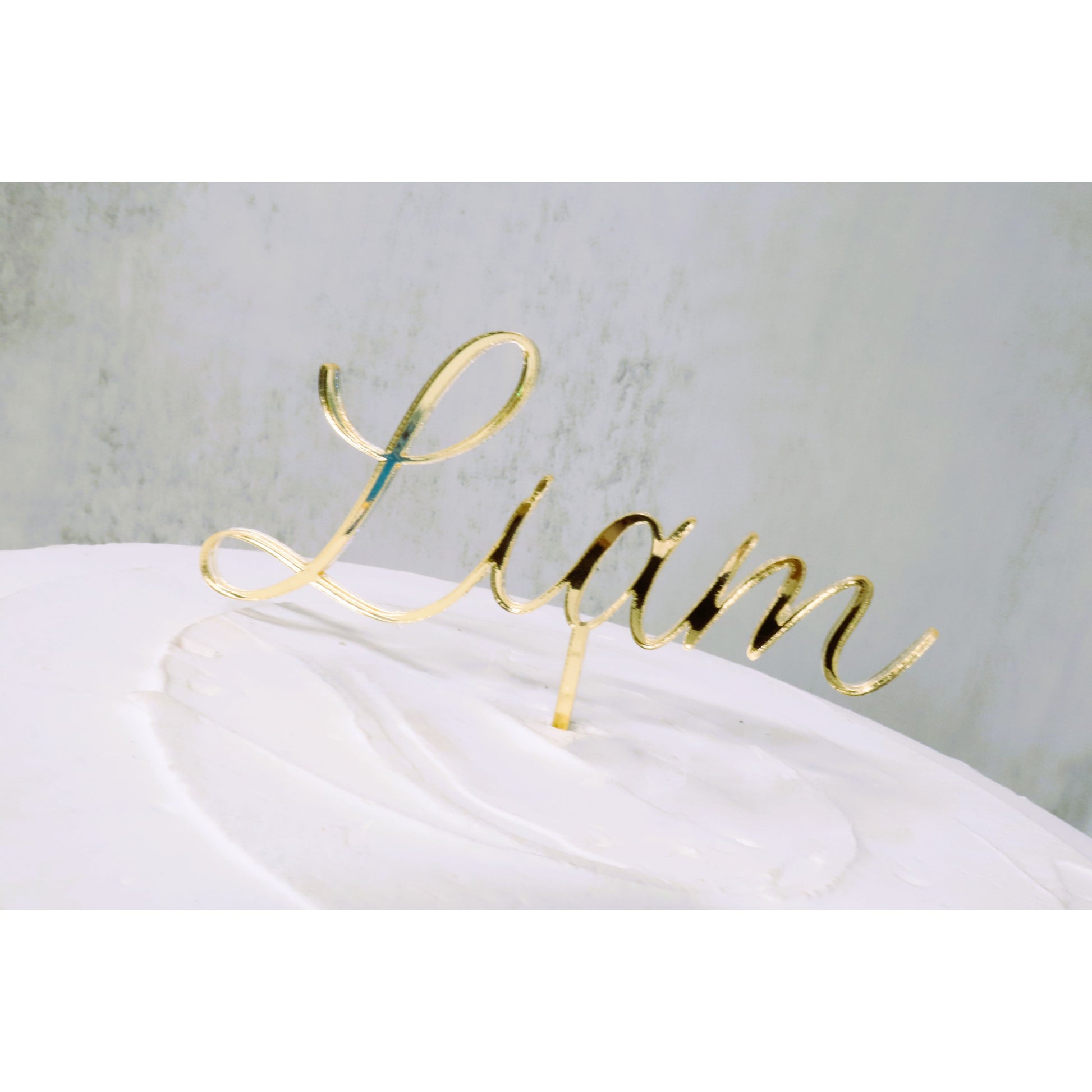 Make your cake stand out with this elegant personalized name cake topper, crafted from 1/8" premium acrylic with a stunning gold mirror finish. Perfect for birthdays, baptisms, weddings, baby showers, or any special occasion . This sleek design adds a modern, sophisticated touch to your celebration.