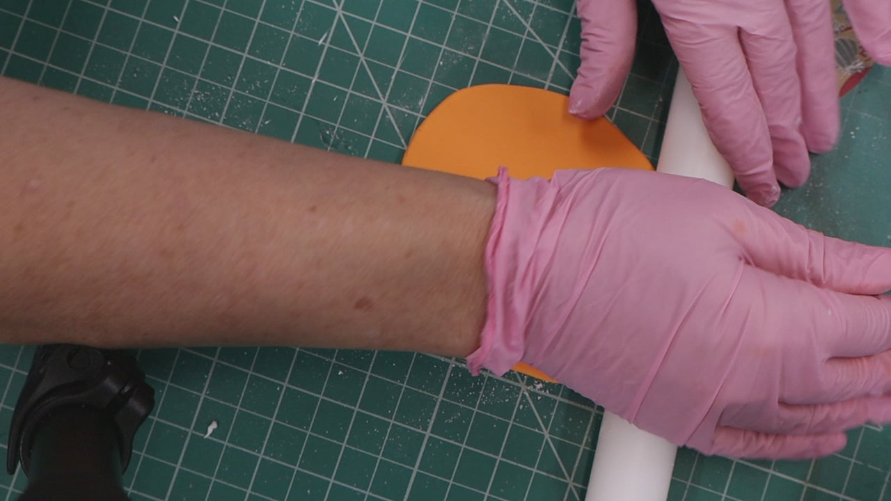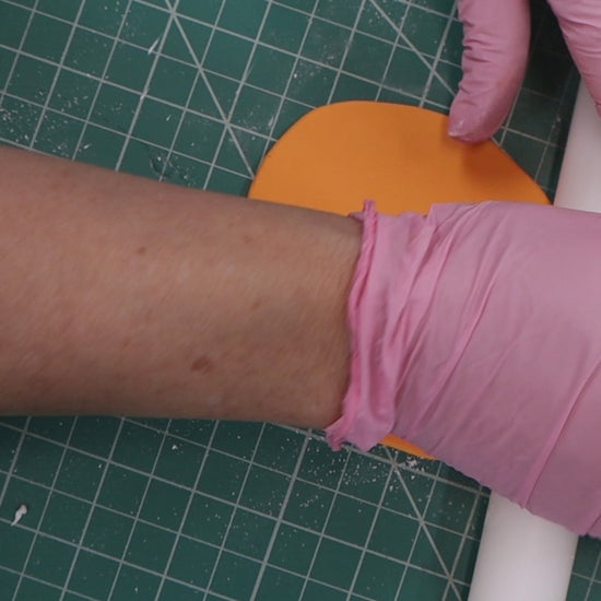 Roll out your fondant to the desired thickness, typically about 1/8 inch, on a surface dusted with powdered sugar or cornstarch to prevent sticking. You can add a tiny bit of CMC to help the fondant hold its shape.