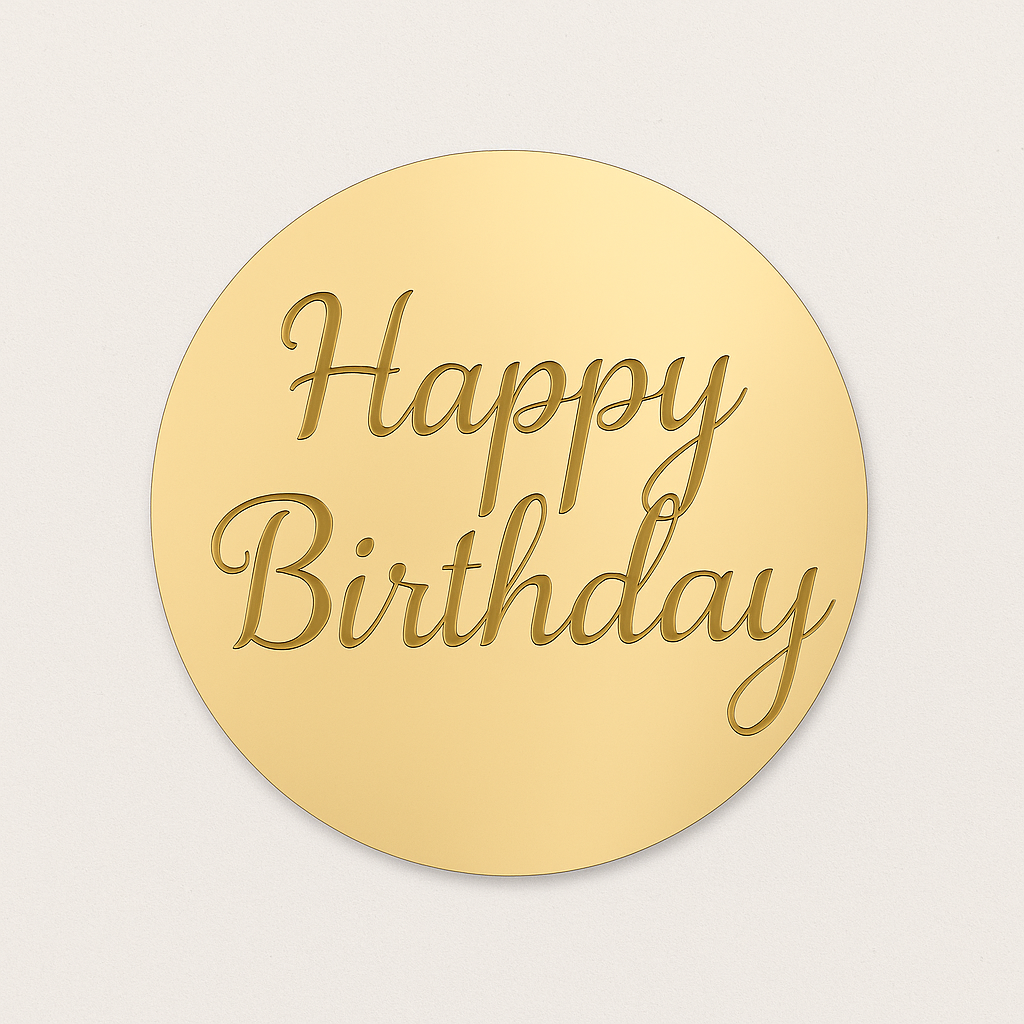 Happy Birthday circle made of acrylic and engraved. Beautiful charm to give your cake that special touch.